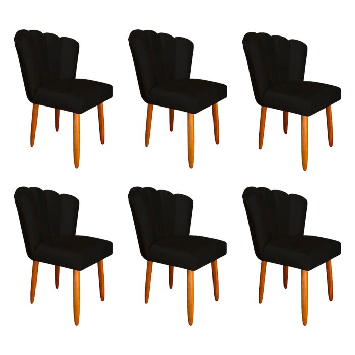 Kit 6 Cadeiras Estofada Petala Pes Palito Veludo Preto